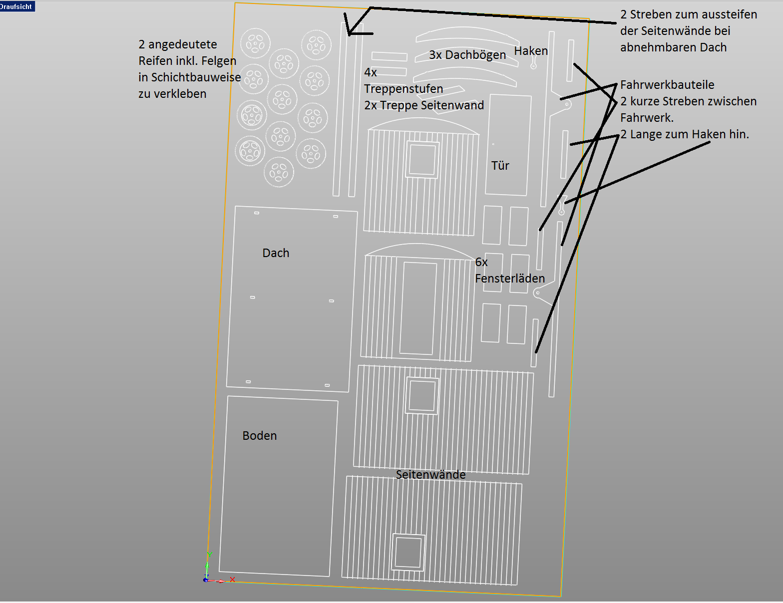 Bauwagen CNC gefräste Bauteile in verschiedenen Maßstäben.