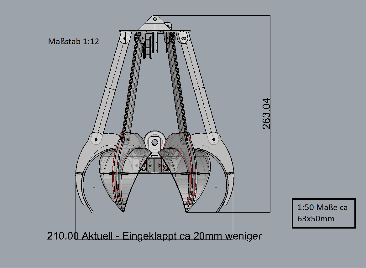 Das eine Bild zeigt den Größenvergleich zwischen kleinen Greifer 1:50 zum großen Greifer in 1:12.