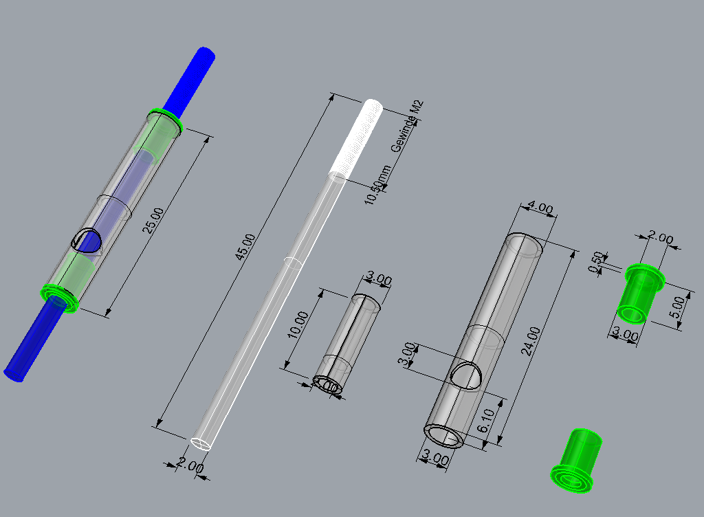 Das Stevenrohr hat eine Länge von 25mm und einen Durchmesser von 4mm.